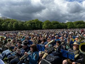 Anfang 2024 wurde die Pfarrei Hammerbachtal aus den Kirchengemeinden Engelthal, Henfenfeld und Offenhausen gegründet. Beim Gründungsgottesdienst spielten die drei Chöre gemeinsam. Das gemeinsame Zusammenspiel wurde seitdem zu besonderen Anlässen zu einer Tradition. Der Großteil der Jungbläser-Gruppe spielt seit der Keilberg-Kirchweih im großen Chor tatkräftig mit. Sie bildeten sich auch auf einer Jungbläserfreizeit in Pappenheim und beim Jungbläsertag des Dekanates noch gesondert fort. Ein besonderes Highlight im Jahr 2024 war die Teilnahme am 3. Deutschen Posaunentag in Hamburg. Etwa 20.000 Bläser waren nach Hamburg gereist, um an der Elbe und im Stadtpark gemeinsam zu musizieren. Für uns war aber auch die Einladung in die Kirchengemeinde St. Markus/ Hoheluft etwas sehr Besonderes. Wir spielten im Stadtteil eine Standmusik und waren danach noch zu einem reichhaltigen Kuchenbüffet eingeladen.